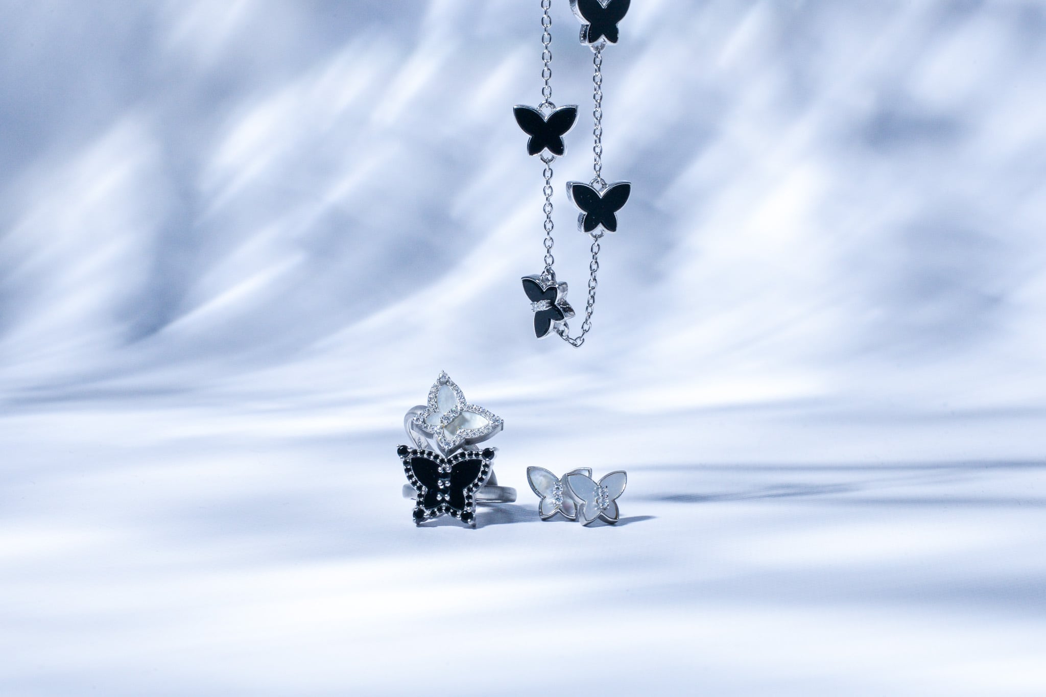 使用宝石の Moissanite / Mother of Pearl / Onyx は、輝き・色味が個々で異なります。一つずつ手作業で製作しておりますので、多少の個体差がございます。予めご了承下さいませ。